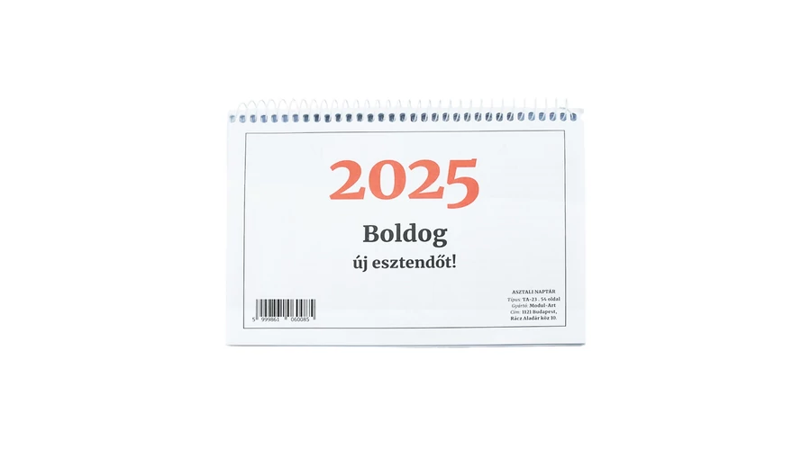 Fehér tömbös álló asztali naptár. Spirálos kivitel.