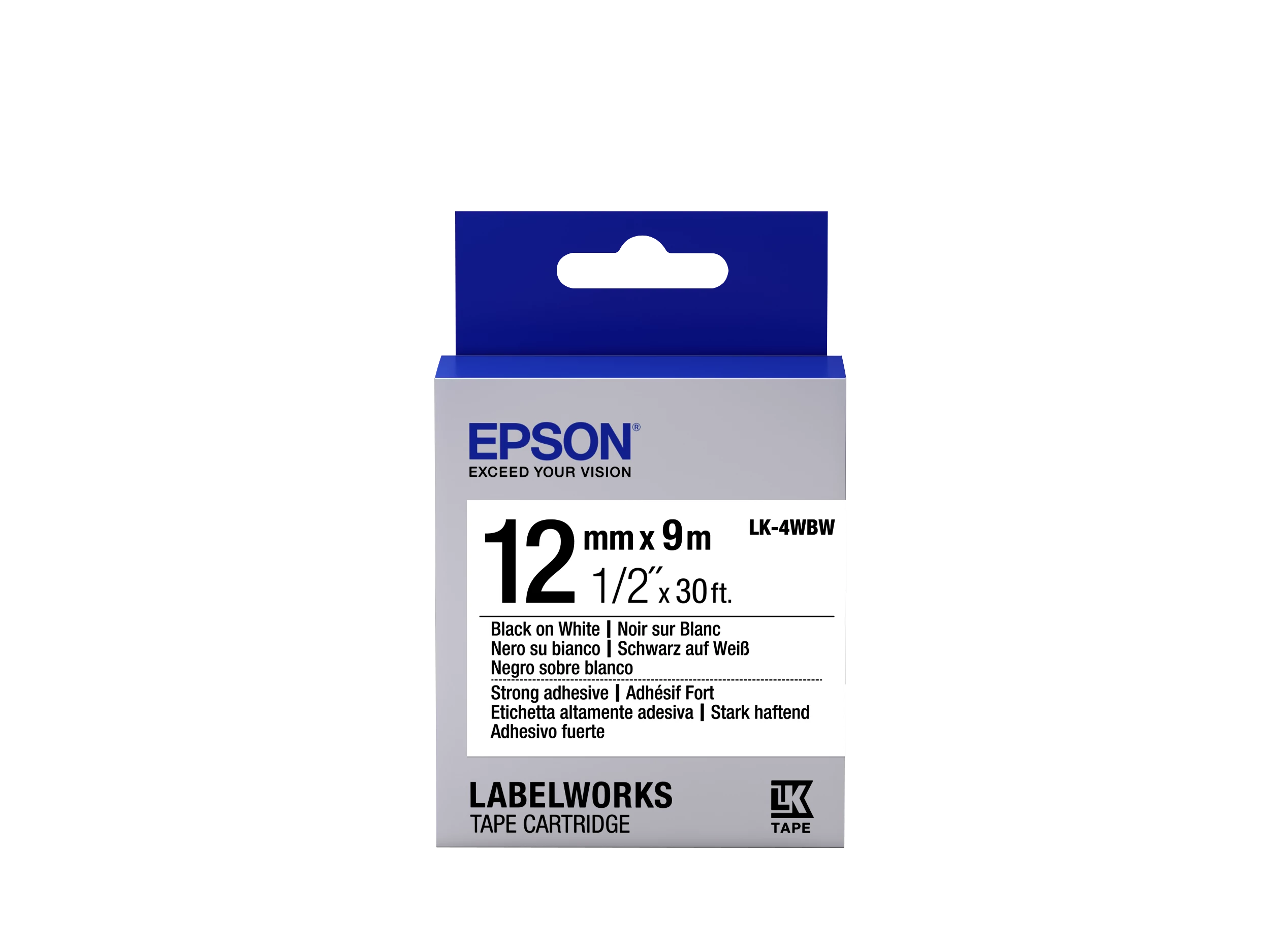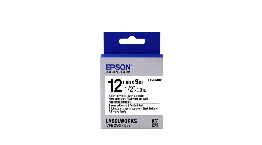 Epson LK-4WBW Black/White 12mm szalag (9m)12 mm széles, 9 m hosszú,fehér alapon fekete betűs erős tapadású címkeszalag |