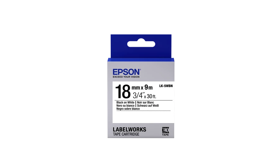 Epson LK-5WBN Black/White 18mm szalag (9m)18 mm széles, 9 m hosszú, fehér alapon fekete betűs öntapadós címkeszalag, standard |