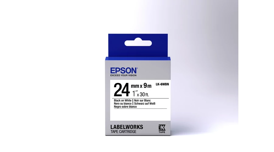 Epson LK-6WBN Black/White 24mm szalag (9m)24 mm széles, 9 m hosszú, fehér alapon fekete betűs öntapadós címkeszalag, standard |
