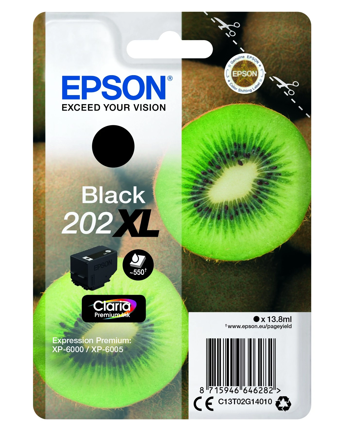 Epson T02G1 Patron Black 13,8ml XL (Eredeti)202XL, Kiwi, Singlepack, 1 x 13.8ml Black, High, XL |
