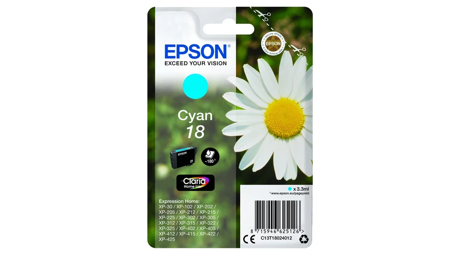 Epson T1802 Patron Cyan 3,3ml (Eredeti)Százszorszép_ 1 x 5,2 ml Cián XP30, XP102, XP202, XP205, XP302, XP305, XP402, XP405 T EPSON T1801 CHIP+EPSON T0711 INK 1KG/200g |