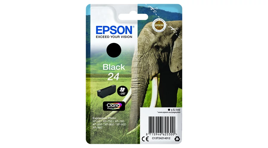 Epson T2421 Patron Black 5,1ml 24 (Eredeti)Elefánt 1 x 5,1 ml Fekete Photo XP 750, XP 850 |