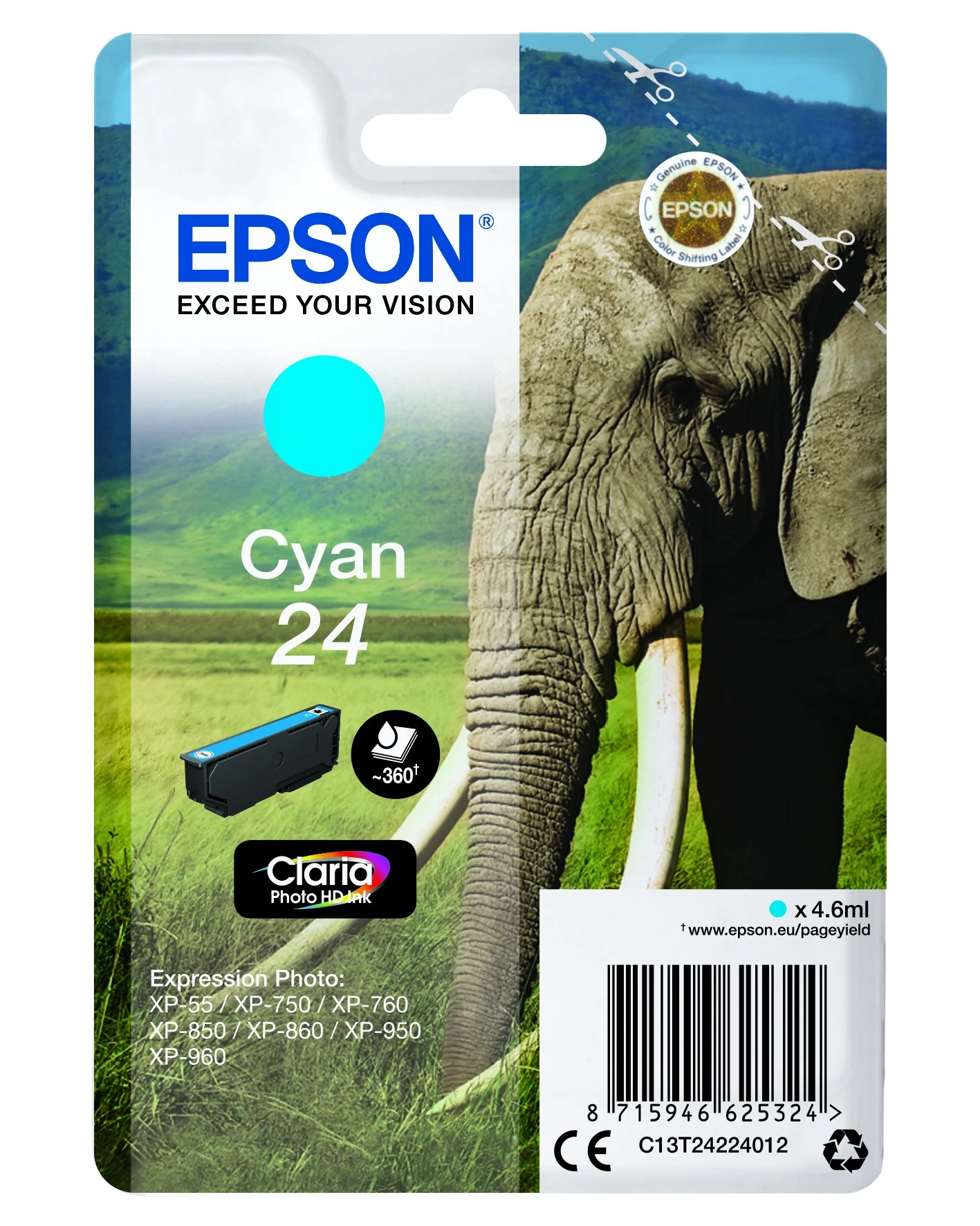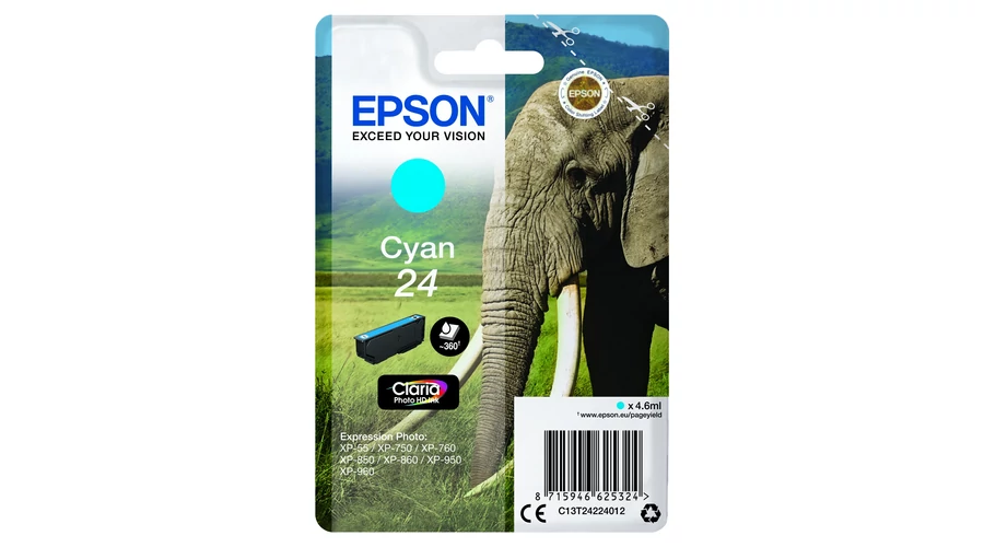 Epson T2422 Patron Cyan 4,6ml 24 (Eredeti)Elefánt 1 x 5,1 ml Cián Photo XP 750, XP 850 |