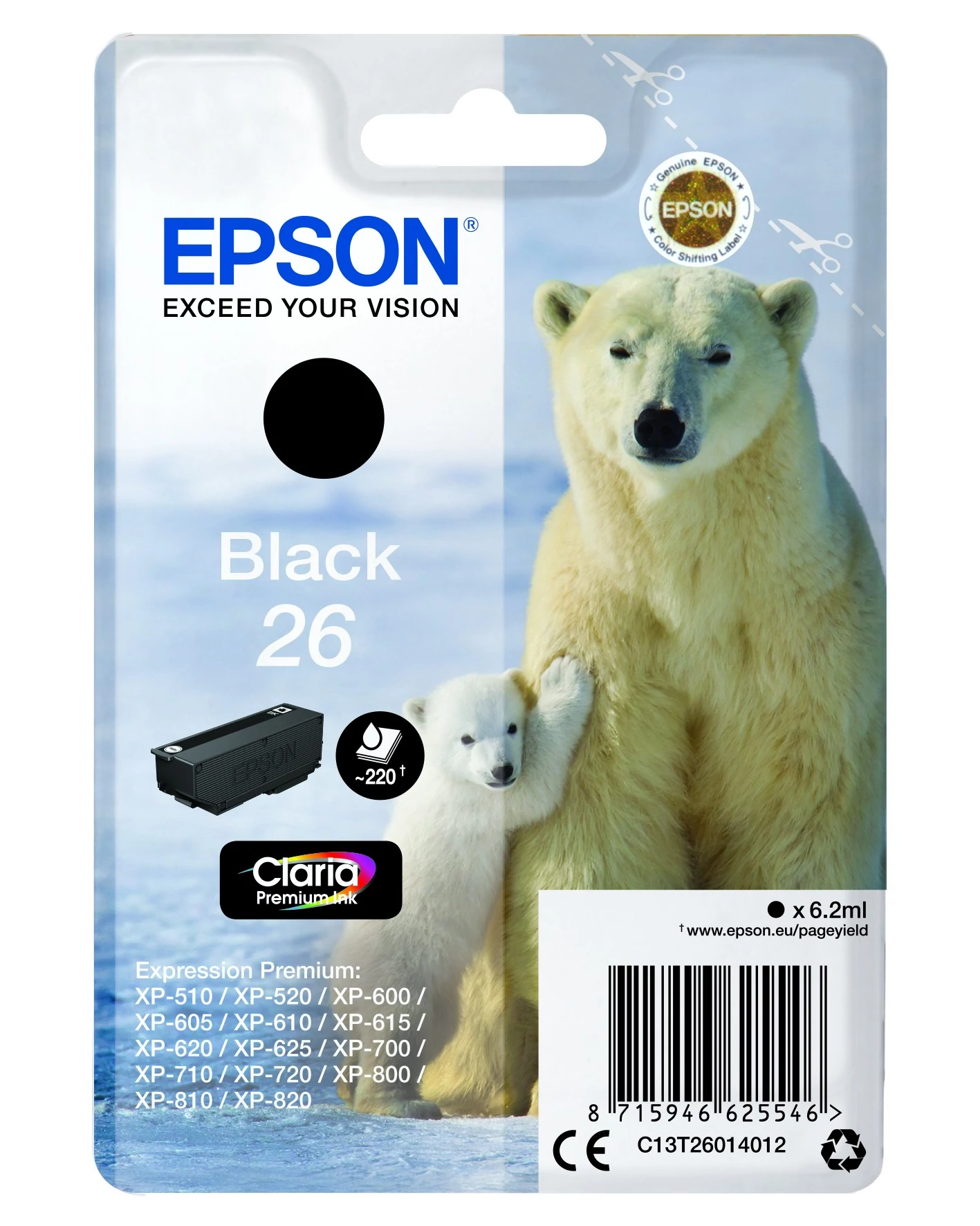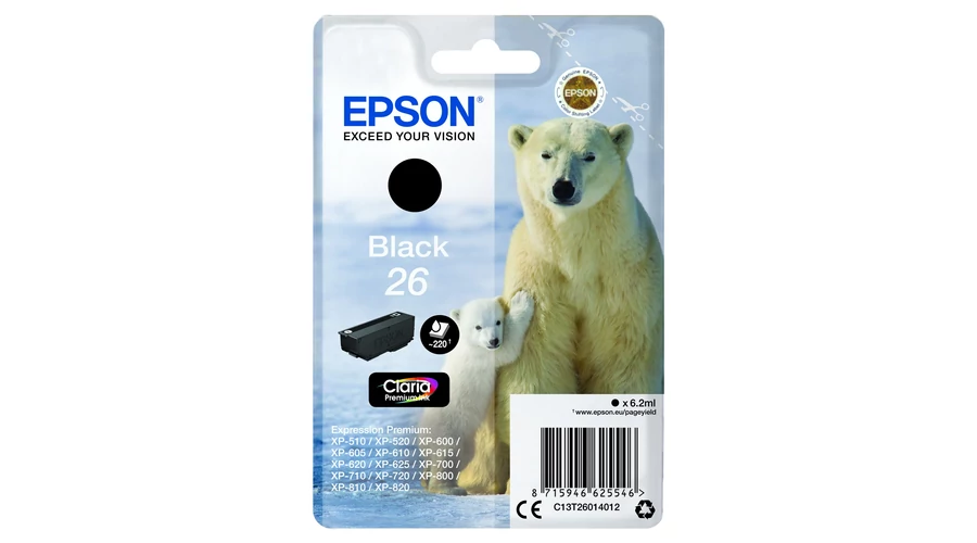 Epson T2601 Patron Black 6,2ml 26 (Eredeti)Jegesmedve 1 x 6,2 ml Fekete 6,2ml 220 oldal T EPSON T2601 chip. Tinta még nincs hozzá. XP600 sorozat, XP700, XP800 |