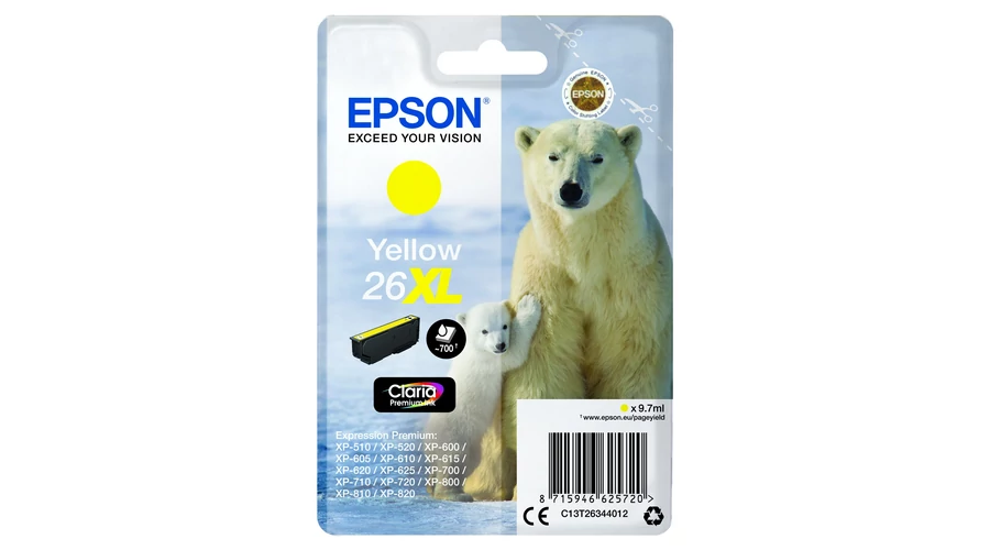 Epson T2634 Patron Yellow 9,7ml 26XL (Eredeti)Jegesmedve 1 x 9,7 ml Sárga XP600 sorozat, XP700, XP800 |