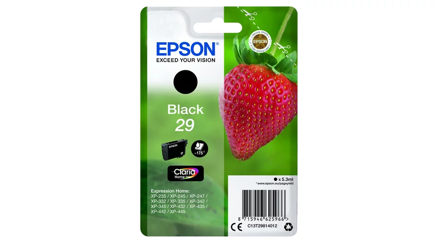 Epson T2981 Patron Black 29 (Eredeti)Epres Claria Home Ink XP235, 175 oldal |