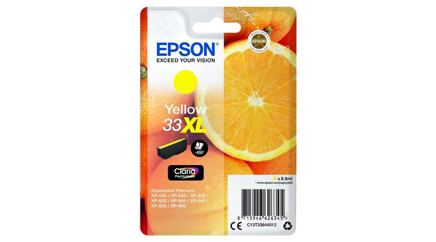 Epson T3364 Patron Yellow 8,9ml (Eredeti)Narancsok XP530 / XP830 gépekhez Claria Premium Ink, 33, Oranges, Singlepack, 1 x 8.9 ml Yellow, High, XL |