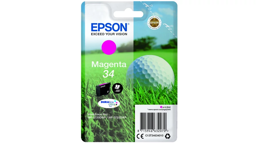 Epson T3463 Patron Magenta 4,2 ml (Eredeti)WF-3720dwf, DURABrite Ultra, 34, Golf labda, Singlepack, 1 x 4.2 ml Magenta |