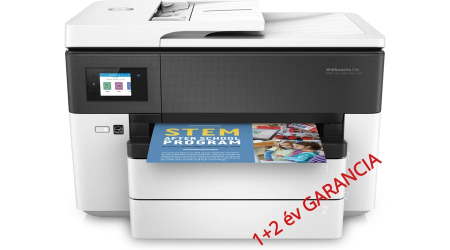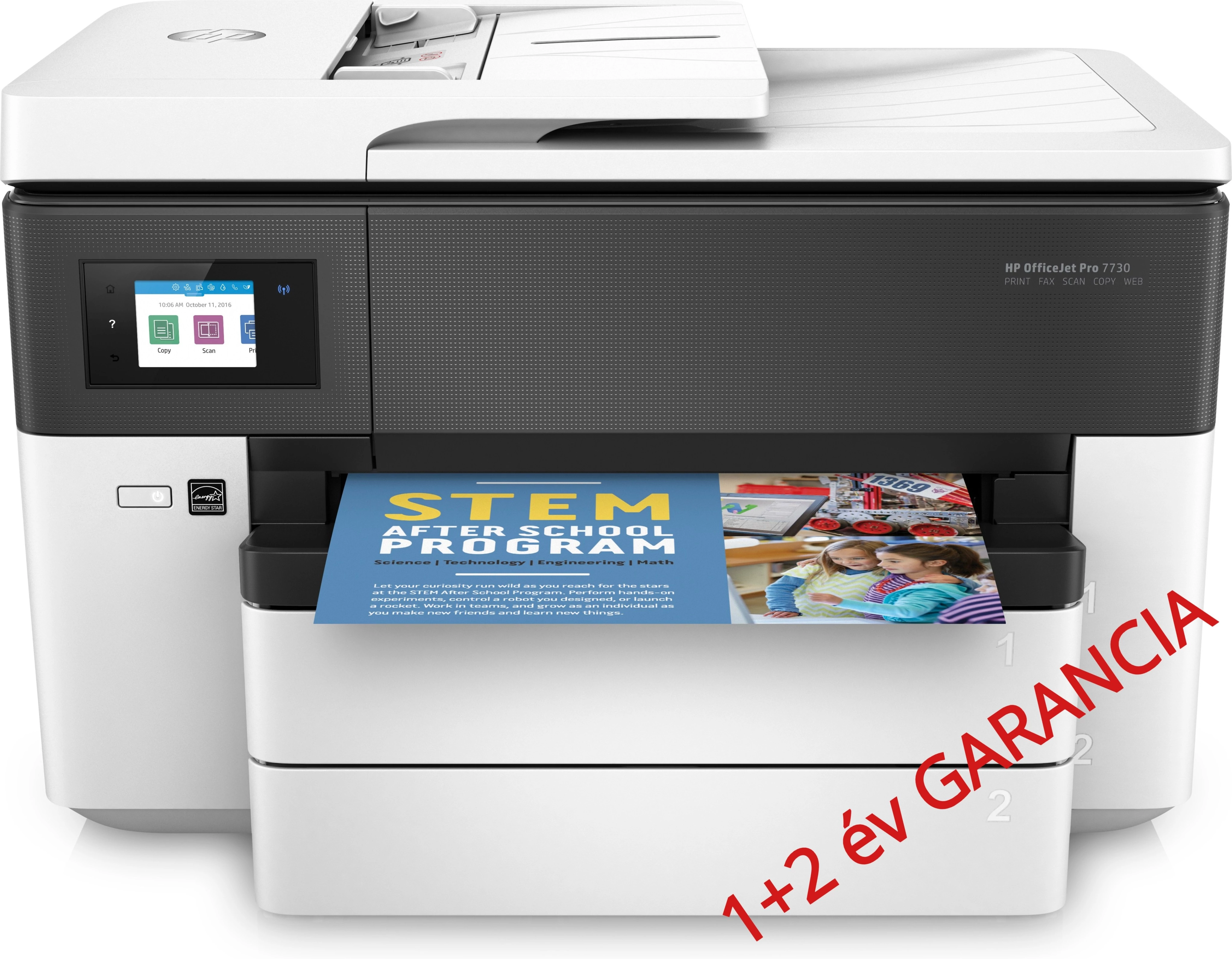 HP OfficeJet 7730 MFP DADF*22 oldal/perc/mono 18 oldal/perc/színes, *automatikus kétoldalas nyomtatás, *Felbontás 1200x1200dpi fekete, 4800X1200dpi színes, *első oldal: 9/10 mp alatt mono/színes, *havi terhelhetőség max. 30.000 oldal, ajánlott havi terhelés 250-1500 oldal. *2*250 lapos lapadagoló (34-250 g/m?), *75 lapos kimeneti tálca, *USB 2.0 *csatlakozó, Ethernet, WIFI. *35 lapos ADF adagoló, az ADF duplexes, síkágyas lapolvasó, FAX, *6,75 cm színes érintőképernyő. *512 MB memória. *Lapleíró nyelvek: HP PCL3. *HP ePrint, AirPrint, Google Cloud print. *Tintapatron: HP 953, 953XL, 957XL (induló fekete: 1000 oldal, színes: 625 oldal). *1+2 év gar.. *Nálunk nincsenek extra költségek, a szállítási díj maximum bruttó 2270 Forint! Delivery cost maximum gross 2270 Huf! Hívjon most! Call us! +36 70 256 5280! |